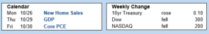 Investors will remain focused on medical advances to fight the coronavirus and negotiations for additional government stimulus measures. Beyond that, New Home Sales will be released on Monday. Third quarter gross domestic product (GDP), the broadest measure of economic activity, will come out on Thursday. The core PCE price index, the inflation indicator favored by the Fed, will be released on Friday.