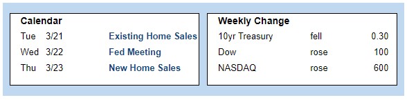 By far the biggest event next week will be the Fed meeting on Wednesday, and most investors anticipate a 25 basis point increase in the federal funds rate. They will be closely watching to see how the Fed addresses the banking troubles and what guidance is offered on their plans for future rate hikes. It will be a light week for economic reports. Existing Home Sales will be released on Tuesday and New Home Sales on Thursday.