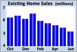 Sales of existing homes fell for the fifth straight month in June to the lowest level since June 2020 and were 14% lower than last year at this time. On a more positive note, inventory levels were 2% higher than a year ago, the first annual increase in three years, but still were at just a low 3.0-month supply nationally. The ever-climbing median existing-home price was 13% higher than a year ago at a record $416,000.