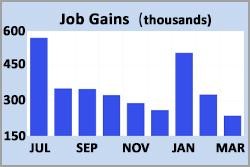 The latest Employment report revealed the expected easing of tightness in the labor market. After significantly larger gains over the prior two months, the economy added just 236,000 jobs in March, very close to the consensus forecast but the smallest monthly gain since December 2020. Average hourly earnings were 4.2% higher than a year ago, down sharply from 4.6% last month and the lowest annual rate of increase since June 2021.