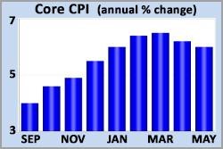 The Consumer Price Index (CPI) is a closely watched inflation indicator that looks at price changes for a broad range of goods and services. Core CPI excludes the volatile food and energy components and provides a clearer picture of the longer-term trend. In May, Core CPI was 6.0% higher than a year ago, down from an annual rate of increase of 6.2% last month, but still far above the readings around 2.0% seen early in 2021.