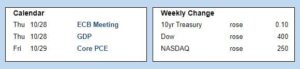Looking ahead, investors will closely watch COVID case counts around the world. They also will look for hints from Fed officials about the timing for changes in monetary policy. Beyond that, the next European Central Bank (ECB) meeting will take place on Thursday. Third quarter gross domestic product (GDP), the broadest measure of economic activity, also will be released on Thursday. The core PCE price index, the inflation indicator favored by the Fed, will come out on Friday.
