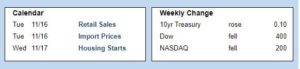 Looking ahead, investors will be seeking hints from Fed officials about the timing for future rate hikes and will closely watch COVID case counts around the world. Beyond that, Retail Sales will be released on Tuesday. Since consumer spending accounts for over two-thirds of U.S. economic activity, the retail sales data is a key indicator of growth. Housing Starts will come out on Wednesday.