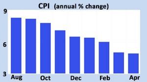 In April, the Consumer Price Index (CPI), one of the most widely followed inflation indicators, was 4.9% higher than a year ago, down from 5.0% last month. This was the smallest annual rate of increase since April 2021. While this annual rate has fallen from a peak of 9.1% in June 2022, it remains far above the readings around 2.0% seen early in 2021, which is the stated target level of the Fed.
