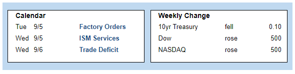 Investors will continue to watch for Fed officials to elaborate on their plans for future monetary policy. It will be a very light week for economic reports. The ISM national services sector index and the Trade Deficit will be released on Wednesday. Mortgage markets will be closed on Monday in observance of Labor Day.