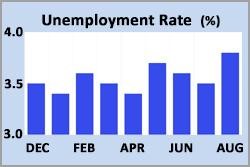 Average hourly earnings, an indicator of wage growth, increased 0.2% from July, slightly below the consensus forecast of 0.3%. Earnings were 4.3% higher than a year ago, down from an annual rate of increase of 4.4% last month. Fed officials keep a close eye on wage growth because it generally raises future inflationary pressures.