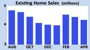 In housing news, sales of existing homes in April fell 3% from March and were 23% lower than last year at this time. Inventory levels stand at just a 2.9-month supply nationally, far below the 6-month supply typical in a balanced market. The median existing-home price of $388,800 again was a little lower than a year ago and down from a record high of $413,800 in June 2022.
