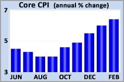 The Consumer Price Index (CPI) is a closely watched inflation indicator that looks at price changes for a broad range of goods and services. Core CPI excludes the volatile food and energy components and provides a clearer picture of the longer-term trend. In February, Core CPI was 6.4% higher than a year ago, up from an annual rate of increase of 6.0% last month, and the highest level since 1982.